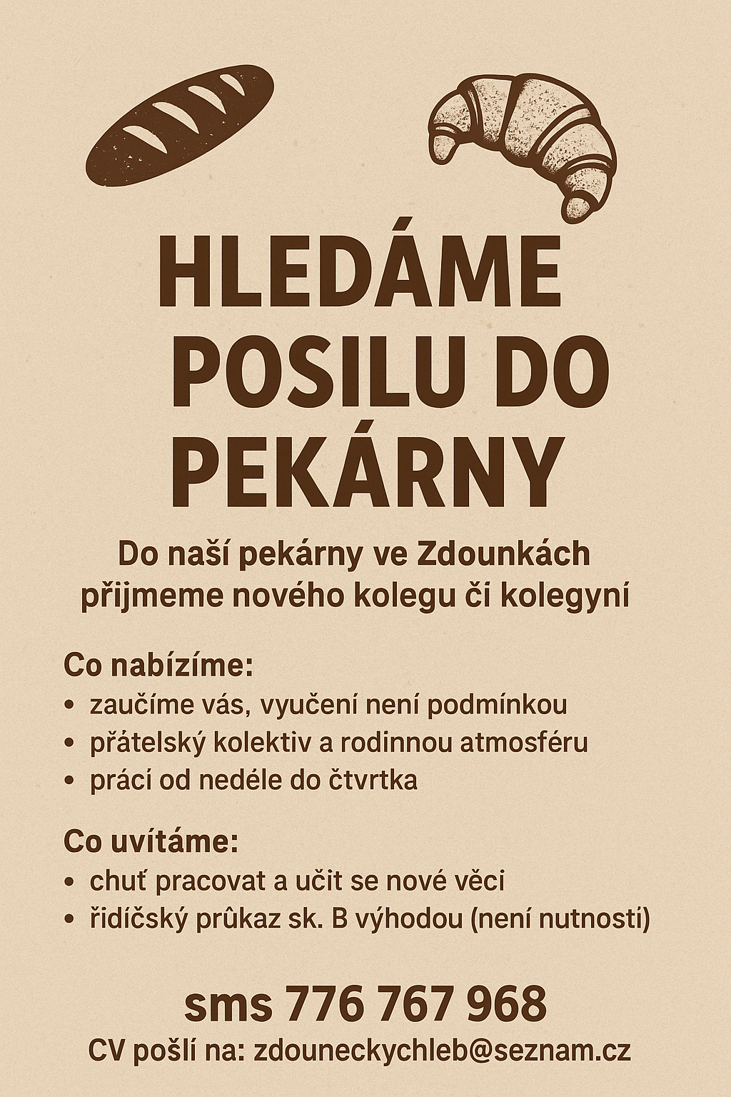 Volná pracovní pozice ve výrobě 08.09.2025 Hledáme nadšeného pekaře, či pekařinku, který/á doplní náš kolektiv.